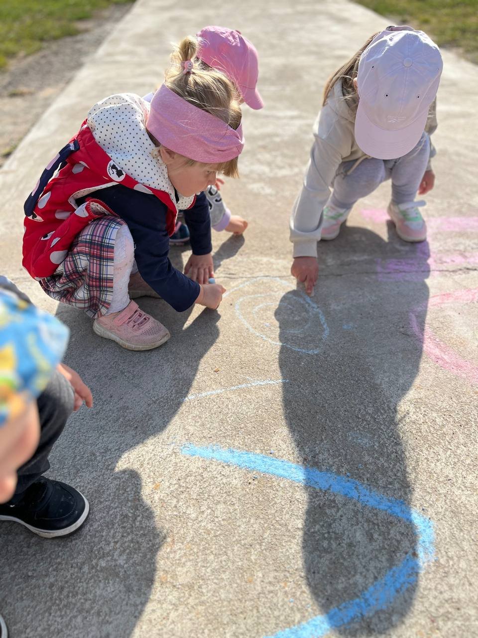 Рисовать цветными мелками, да ещё не на бумаге, а на асфальте — это счастье для маленьких художников. Воспитанники с энтузиазмом взялись за разноцветные мелки и уже через несколько минут асфальт заиграл яркими красками. Рисование мелками подарило много положительных эмоций воспитанникам, а яркие рисунки на асфальте продолжают радовать детей и родителей.