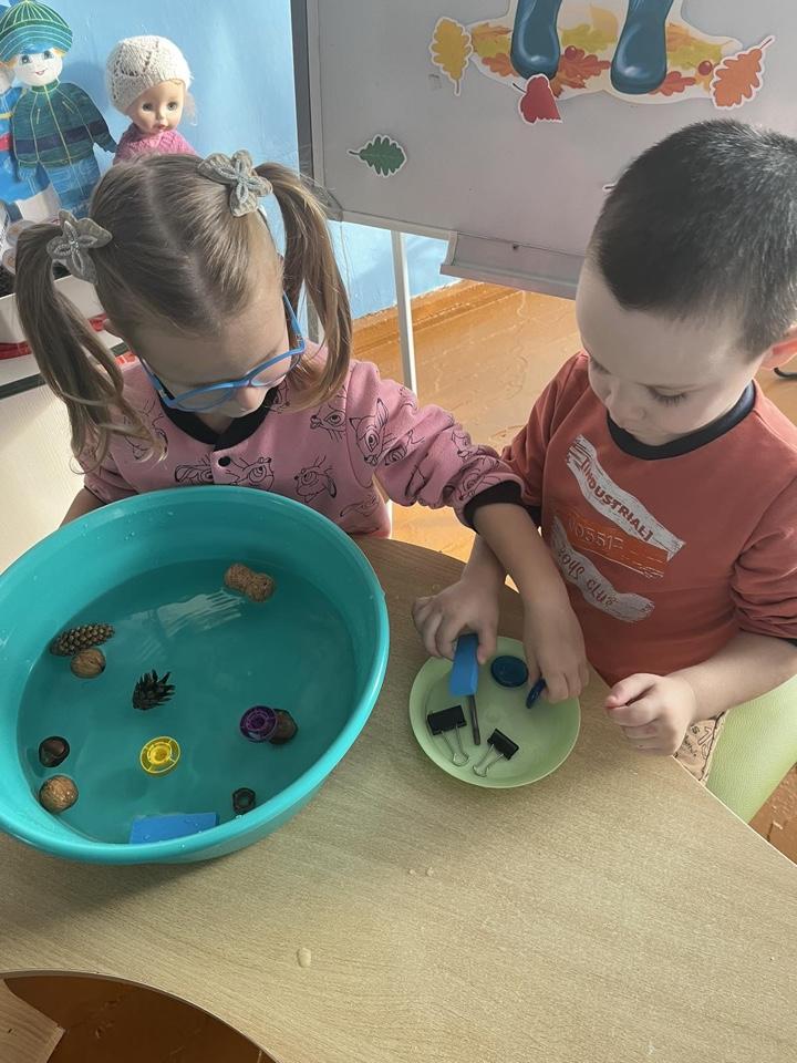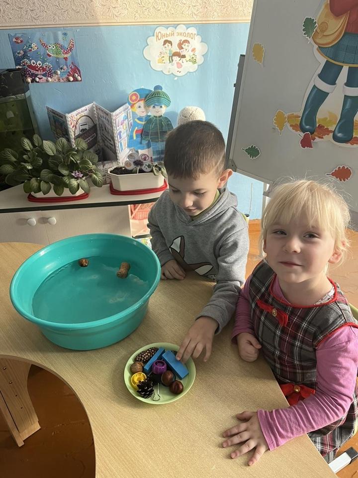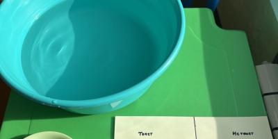 Во время эксперимента воспитанники расширяют представления о свойствах воды: тяжёлые предметы в воде тонут, а лёгкие – плавают; приобщаются к навыкам экспериментирования (высказывают предположения, делают выводы, обследуют предметы); развивают тактильно - кинестетическую чувствительность, мелкую моторику рук; интерес к экспериментированию; закрепляют понятия о свойствах предметов; воспитывают дисциплинированность.