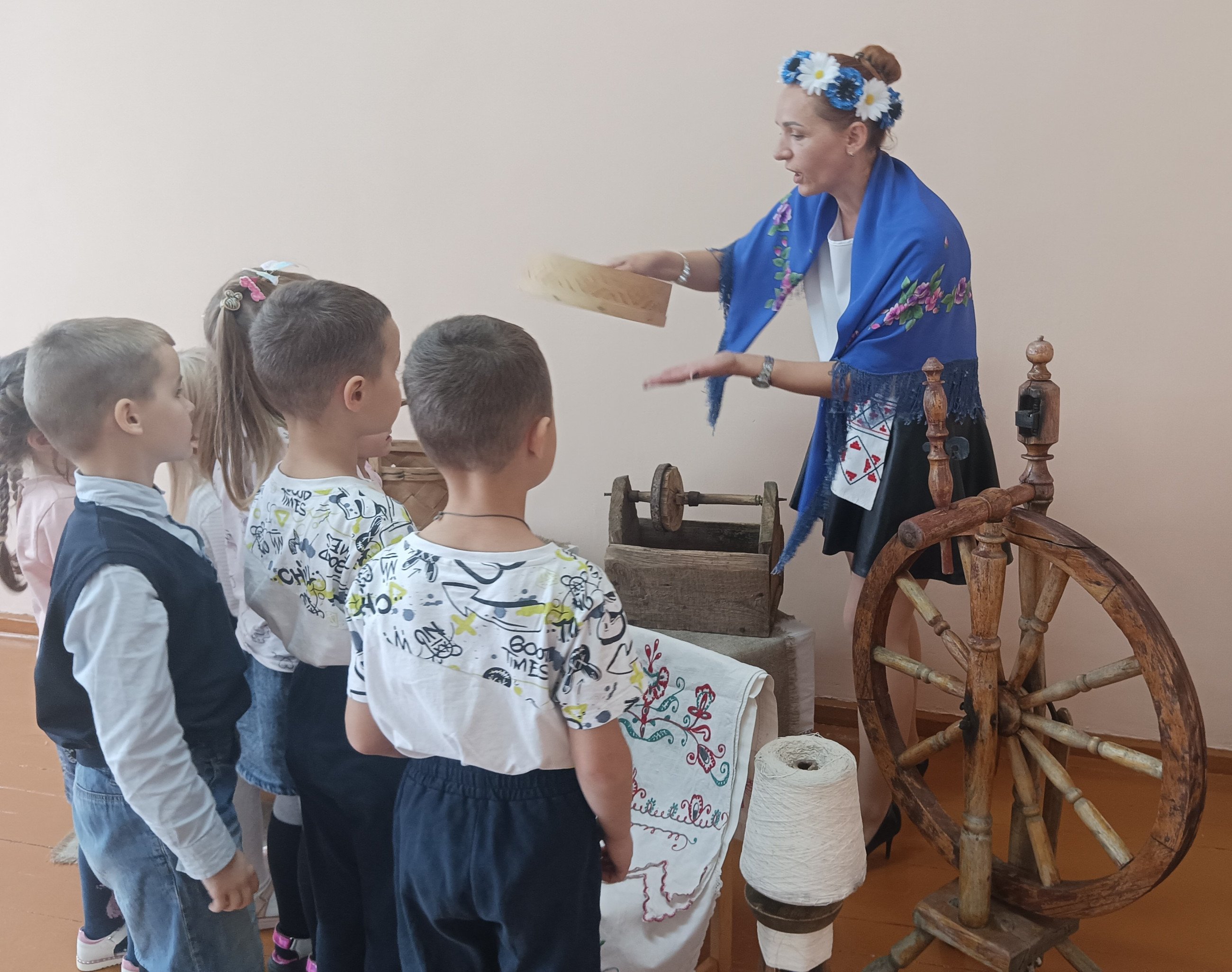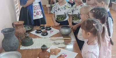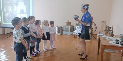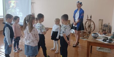 Педагог Гусейнова М.И. пригласила своих воспитанников в этнографическую экспозицию, где ребята познакомились с устройством и предметами деревенского быта, узнали о белорусских национальных блюдах, поиграли в народные игры.