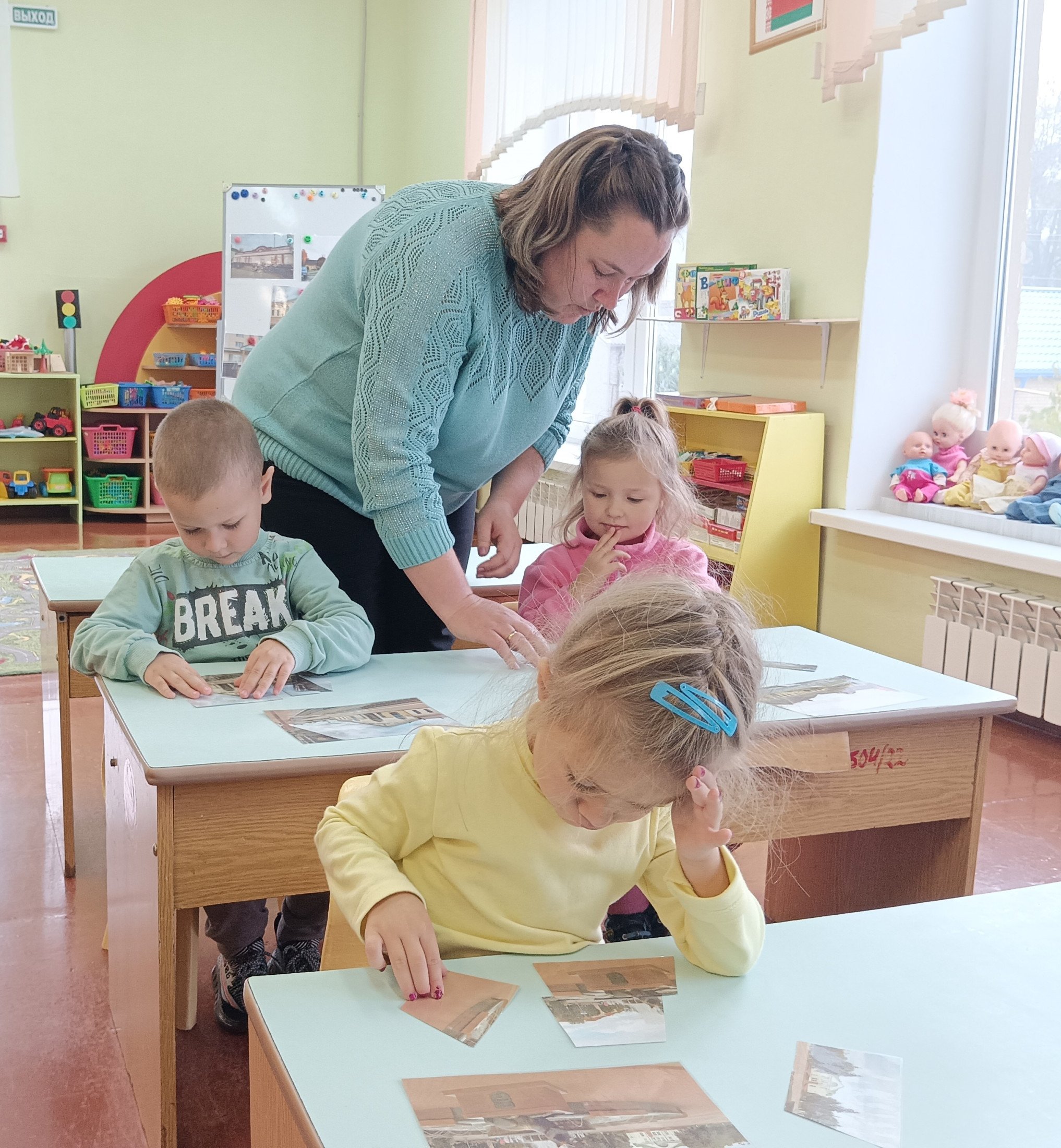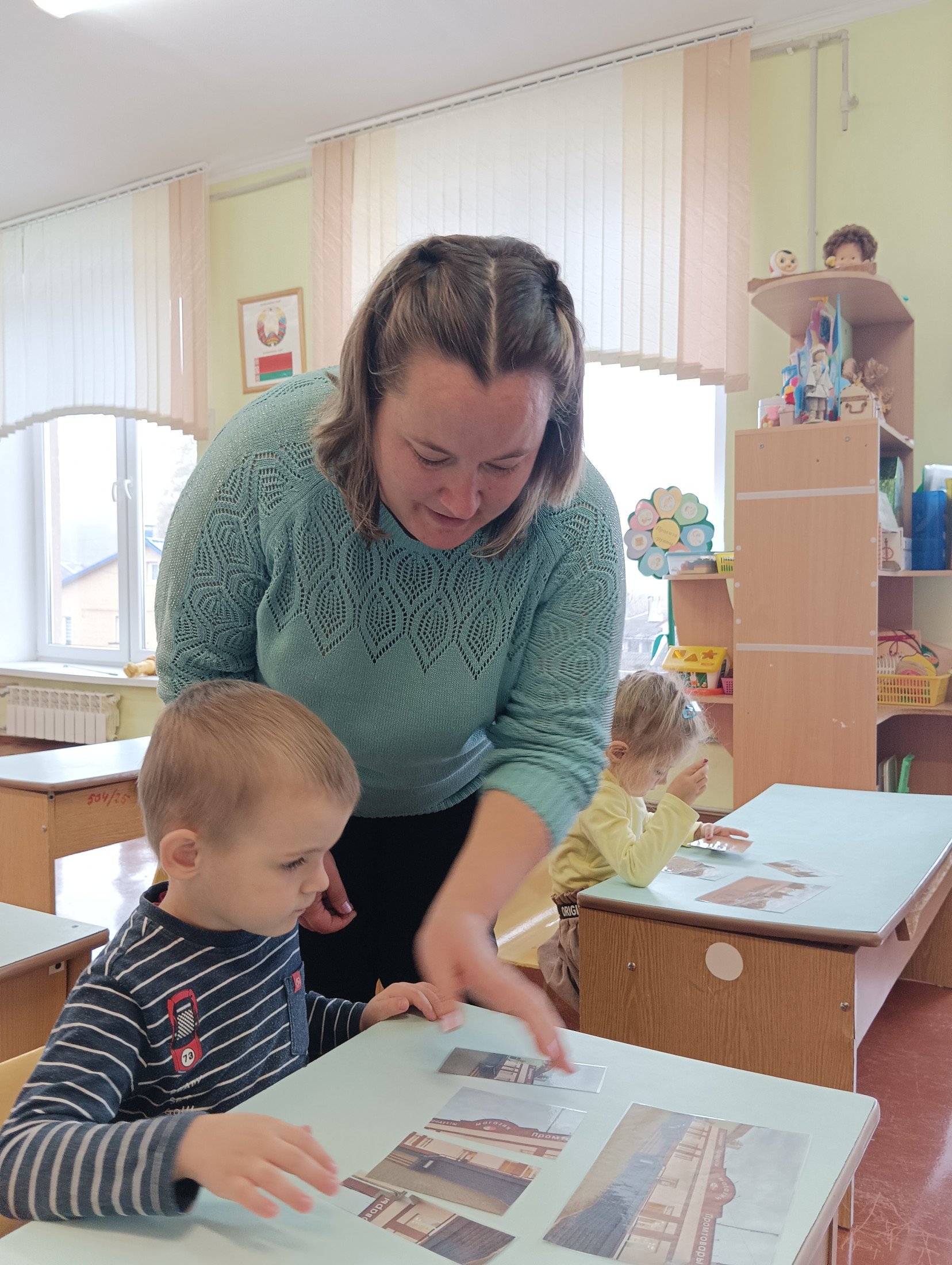 Воспитатель дошкольного образования Якубчик Е.А. продемонстрировала нерегламентированный вид деятельности (дидактическую игру) с воспитанниками группы интегрированного обучения и воспитания №2 (от 3 до 4 лет), где обучающиеся с интересом познакомились с родным городом, в частности, ещё лучше узнали микрорайон «Центральный». Ребята с удовольствием собирали части разрезных картинок в единую фотографию с изображением мест города, узнавали и называли их.