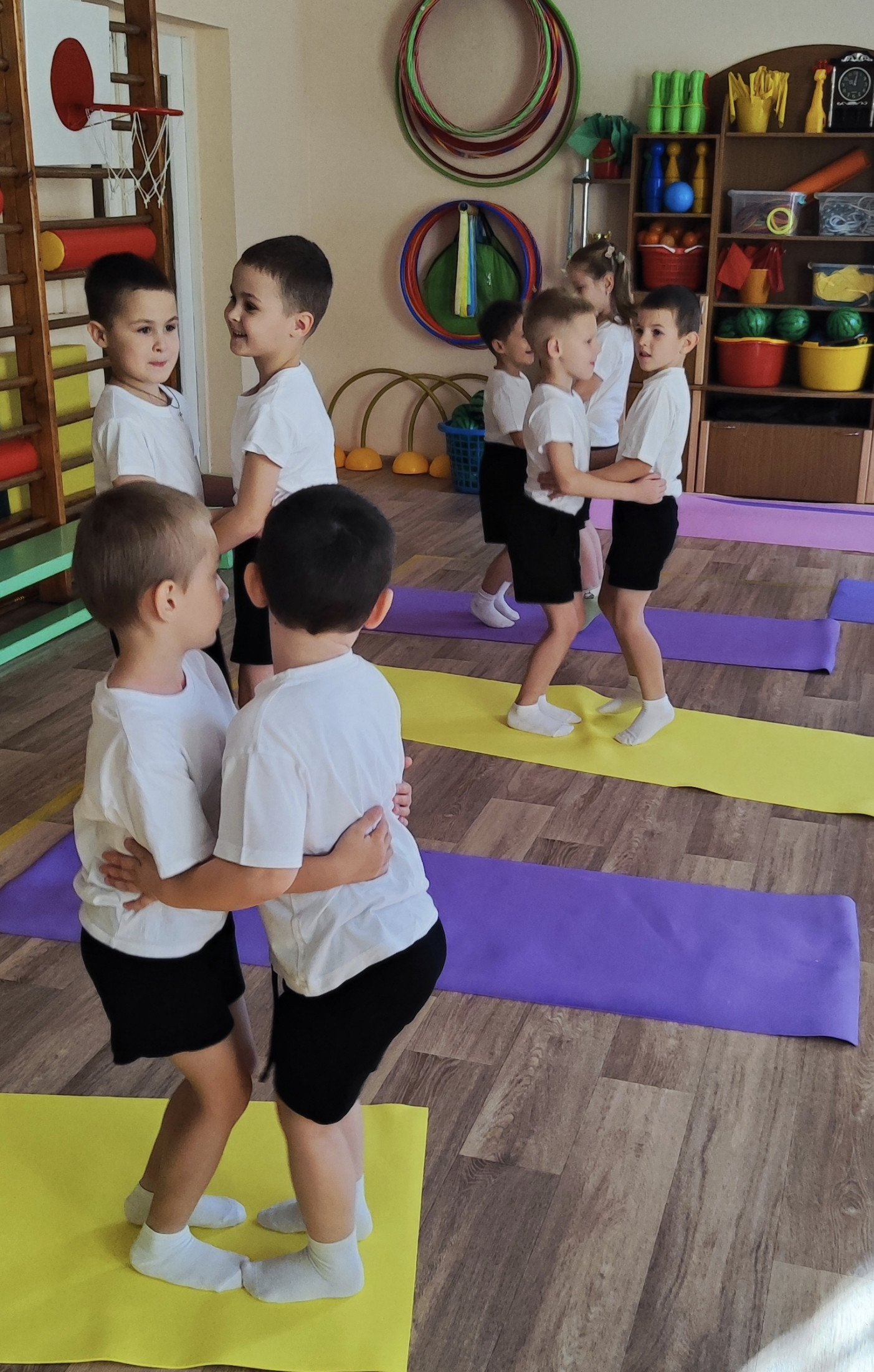 Сегодня в старшей группе прошло занятие по образовательной области «Физическая культура» с использованием гимнастических ковриков. Цели занятия были достигнуты: развивались основные физические качества: гибкость, координация, сила; укреплялись мышцы спины и живота, улучшалась осанка. Занятие прошло организованно и эмоционально положительно. Дети проявляли активность, интерес и старание при выполнении упражнений. Использование гимнастических ковриков позволило разнообразить двигательную деятельность, обеспечив комфорт и безопасность при выполнении упражнений.