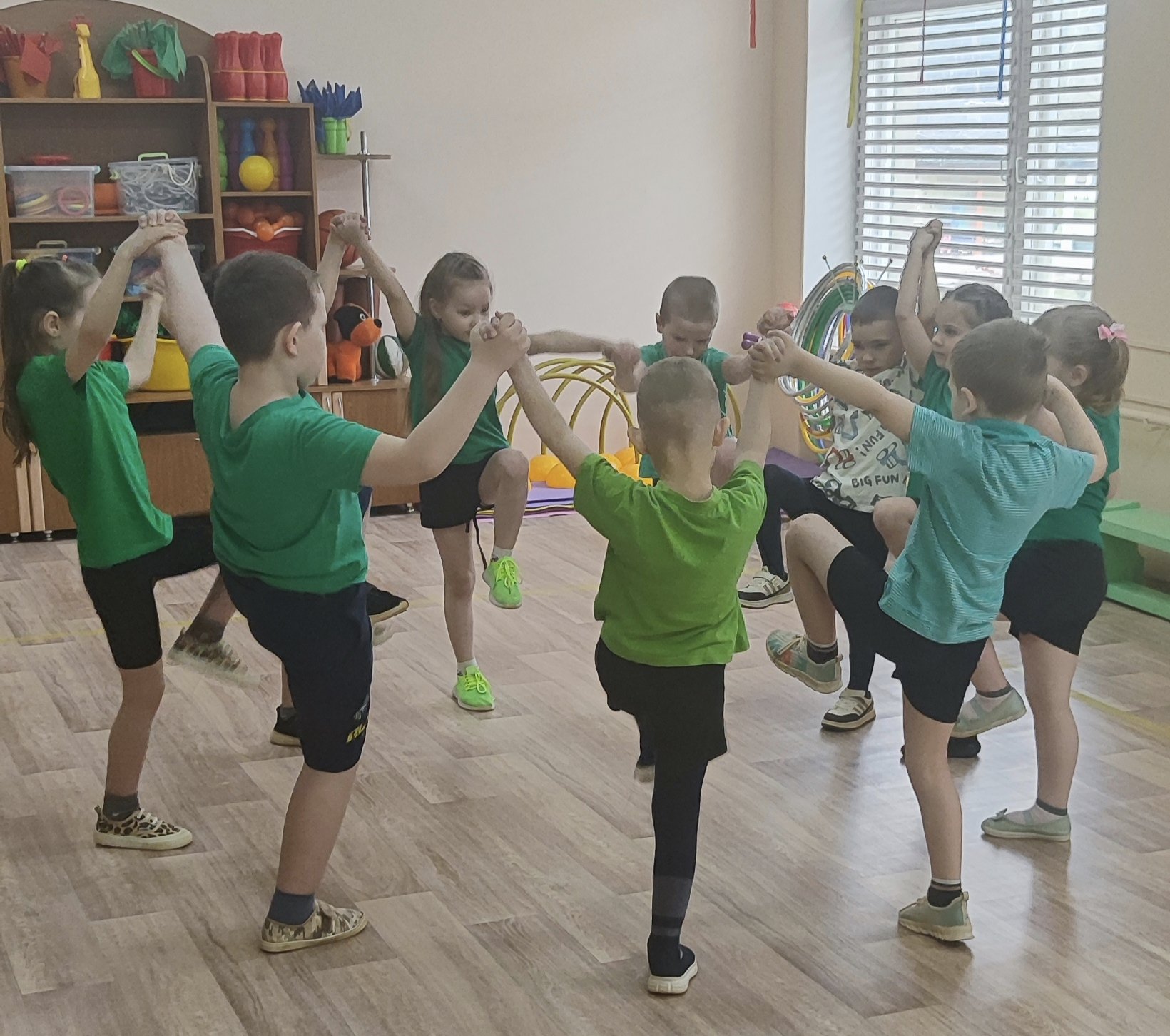 Сегодня в старшей группе прошло увлекательное занятие по образовательной области «Физическая культура». Главной особенностью занятия стала игровая форма проведения упражнений в кругу. Такая организация занятия не только развивает ловкость и координацию, но и учит воспитанников взаимодействовать друг с другом. Физкультура в кругу - это отличный способ укрепить здоровье и поднять настроение!