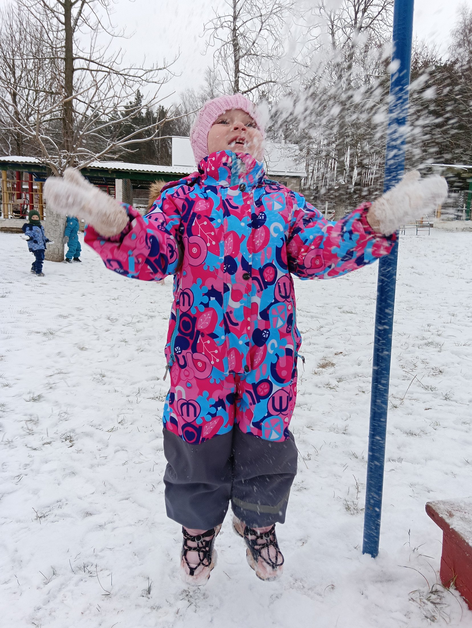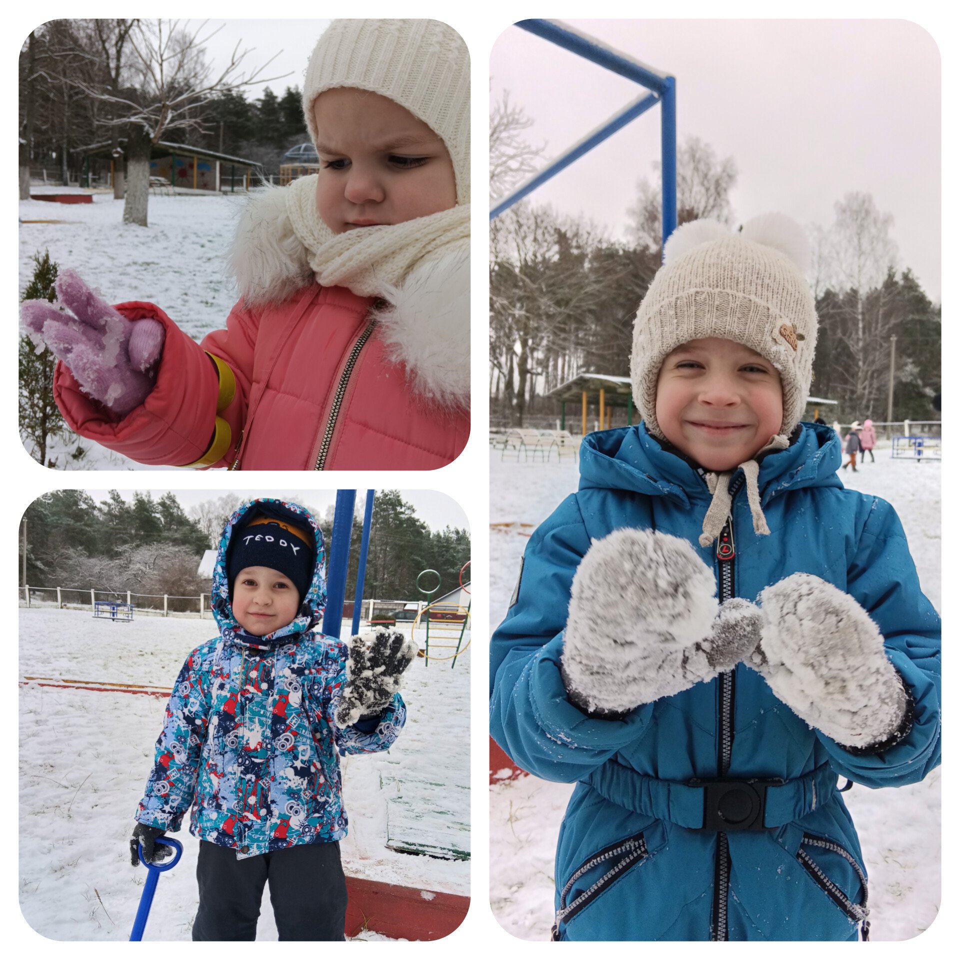 Воспитанники получили огромное удовольствие и радость, играя с первым снегом.