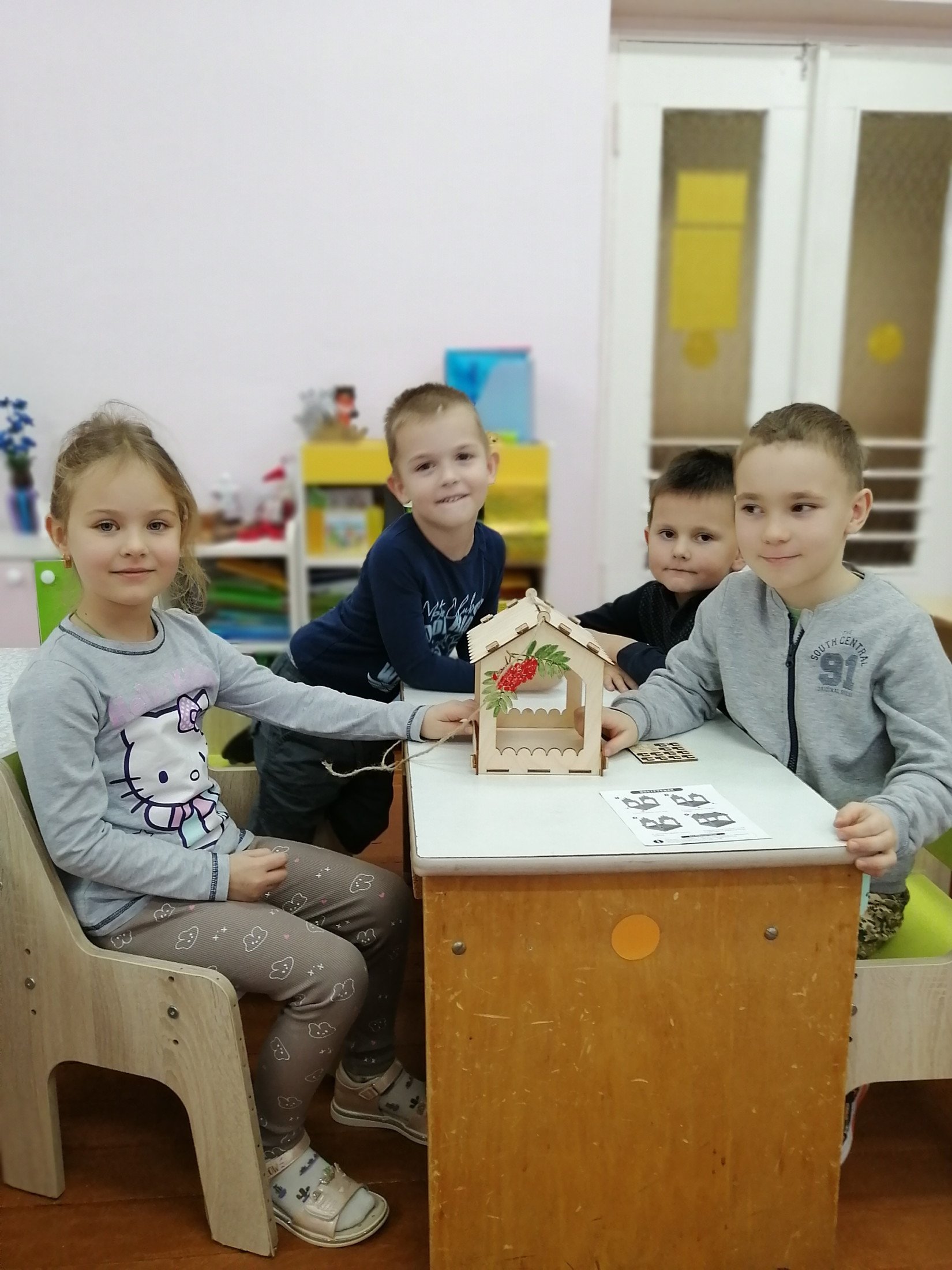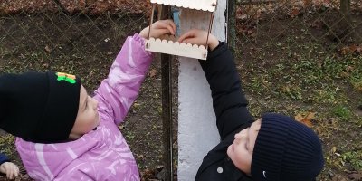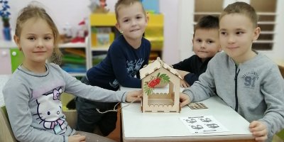 Воспитанники старшей группы сделали кормушку своими руками из деревянного конструктора. Затем на прогулке ребята повесили кормушку и посыпали птицам корм. Так дети учатся заботиться о птицах, помогать им в зимний период.